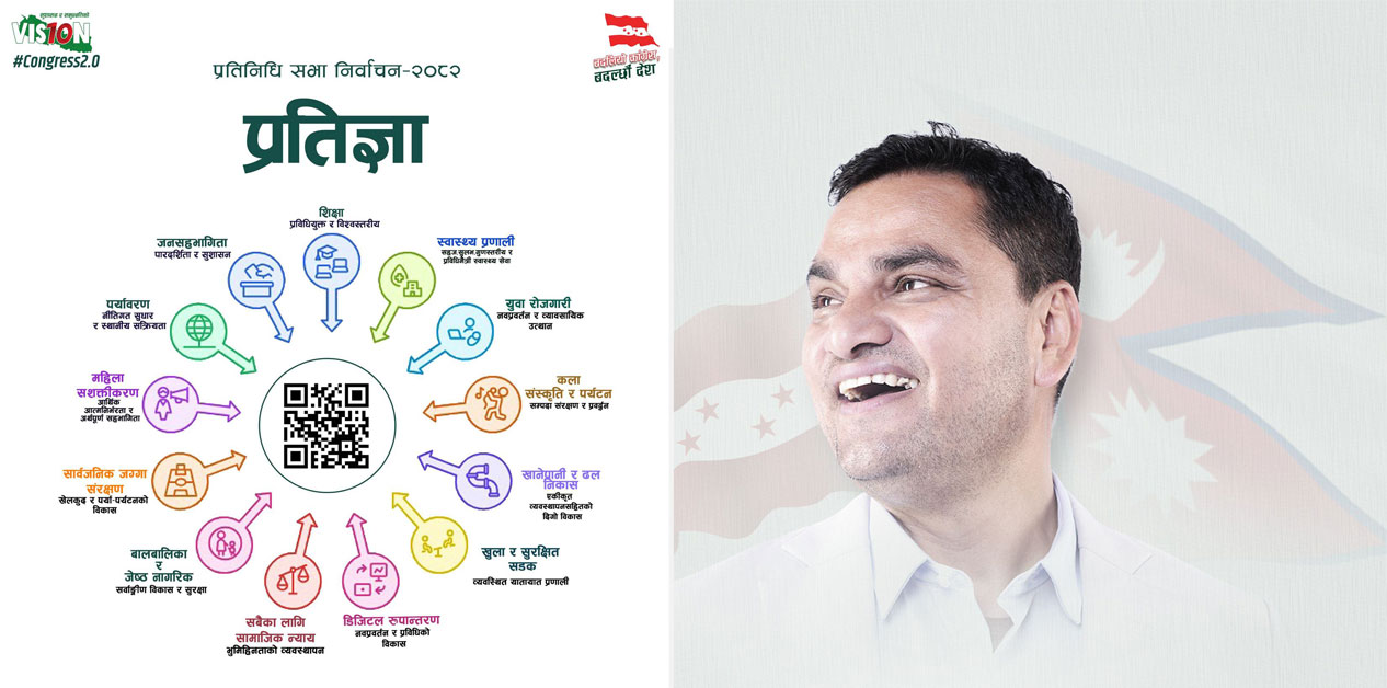 नेपाली कांग्रेसका महामन्त्री एवं काठमाडौँ ५ का प्रतिनिधिसभा सदस्य उम्मेदवार प्रदीप पौडेलले आफ्नो चुनावी क्षेत्रका लागि प्रतिज्ञापत्र सार्वजनिक गरेका छन्। सामाजिक सञ्जालमार्फत उनले सोमबार १४ बुँदामा काठमाडौँ ५ को विकास र नीतिगत परिवर्तनका लागि आफ्ना प्रतिबद्धता सार्वजनिक गरेका हुन्।