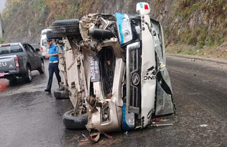 काठमाडौ बाट पोखरा जाँदै गरेको बा -प्रदेश -०१- ००६ – ख – ७२२१नम्बरको बाइक्रोबस पृथ्वी राजमार्ग अन्तर्गत धादिङको आदमघाट नजिकै सडकमा नै पल्टिएको हो ।