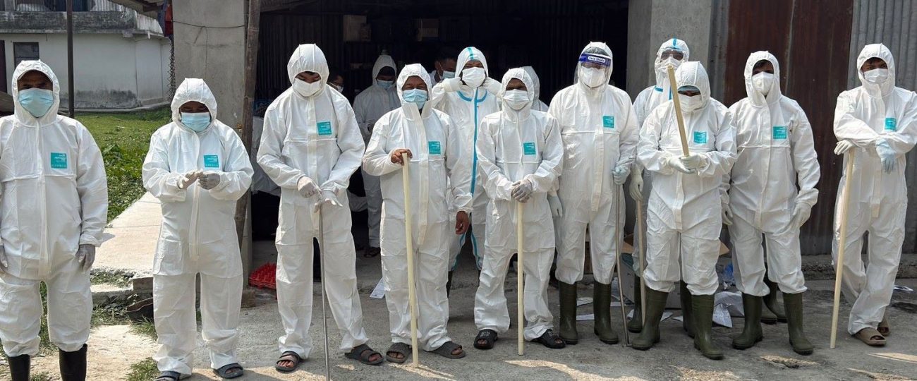 “कुखुराको टाउकोमा हिर्काएर नष्ट गरिन्छ“ उहाँले भन्नुभयो, “त्यसपछि गहिरो खाल्डो खनेर चुन र ब्लिचिङ पाउडर प्रयोग गरी सुरक्षित तरिकाले पुर्नुपर्छ ।” ठुलो सङ्ख्यामा कुखुरा पुर्नका लागि डोजरहरूको प्रयोग गरिएको छ ।