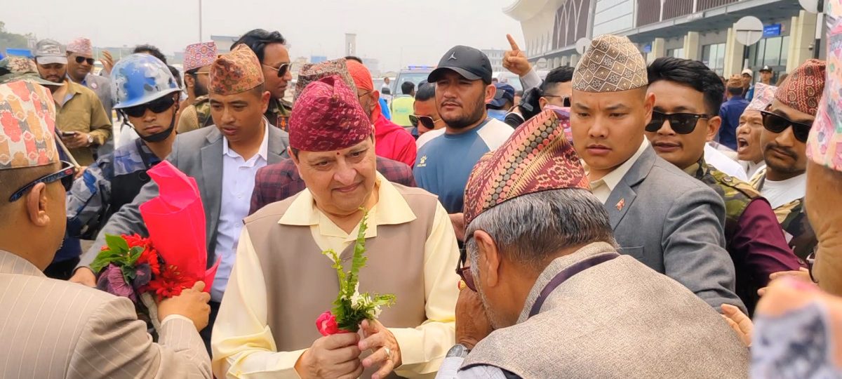 स्वागतका लागि उपस्थित भएका समर्थकहरूले राष्ट्रिय झण्डा प्रदर्शन गर्दै पूर्वराजाको पक्षमा जयजयकार समेत गरेका थिए ।