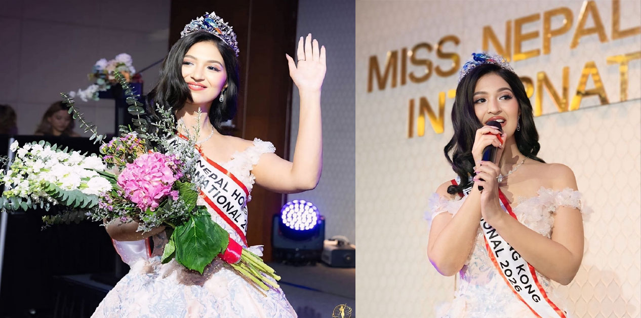 मिस हङकङ नेपाल २०२६ को उपाधि दीपमाला खरेल ढकाललाई प्रदान गरिएको छ। हङकङको इटन होटेलमा आयोजित ‘ग्रान्ड कोरोनेसन’ समारोहमा उनलाई ताज पहिराइएको हो। मिस नेपाल हङकङको ताज मिस नेपाल वर्ल्ड २०२४ की विजेता आश्माकुमारी केसीले पहिराइदिएकी थिइन्। मिस नेपाल हङकङ दीपमालाले अब २०२६ मा आयोजना हुने मिस नेपाल प्रतियोगितामा प्रतिस्पर्धा गर्न पाउनेछिन्। यसपटक दीपमाला सिधैँ […]