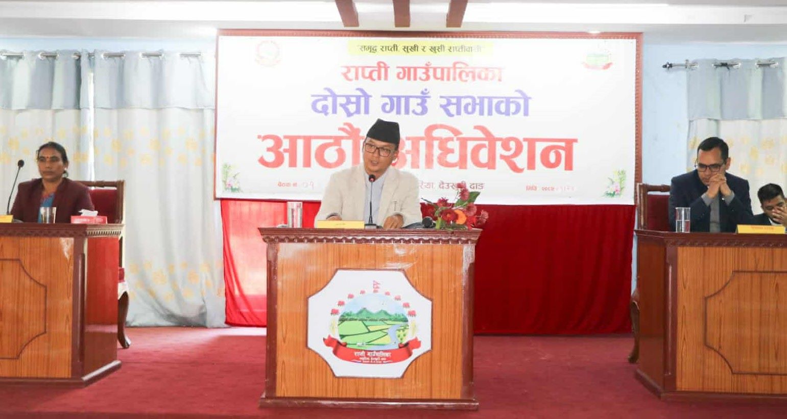दाङको राप्ती गाउँपालिकाको दोस्रो गाउँसभाको आठौँ अधिवेशन सुरु भएको छ । स्थानीय सरकार सञ्चालन ऐन, २०७४ को दफा १९ तथा लुम्बिनी प्रदेशको गाउँ सभा–नगर सभाको (कार्य सञ्चालन) कार्यविधि ऐन, २०७६ को दफा ३ (१) बमोजिम विहीबारदेखि गाउँपालिका अधिवेशन सुरु भएको हो । राप्ती गाउँपालिका अध्यक्ष प्रकाश विष्टको अध्यक्षतामा सुरु भएको अधिवेशनको पहिलो बैठकमा सार्वजनिक महत्वका […]